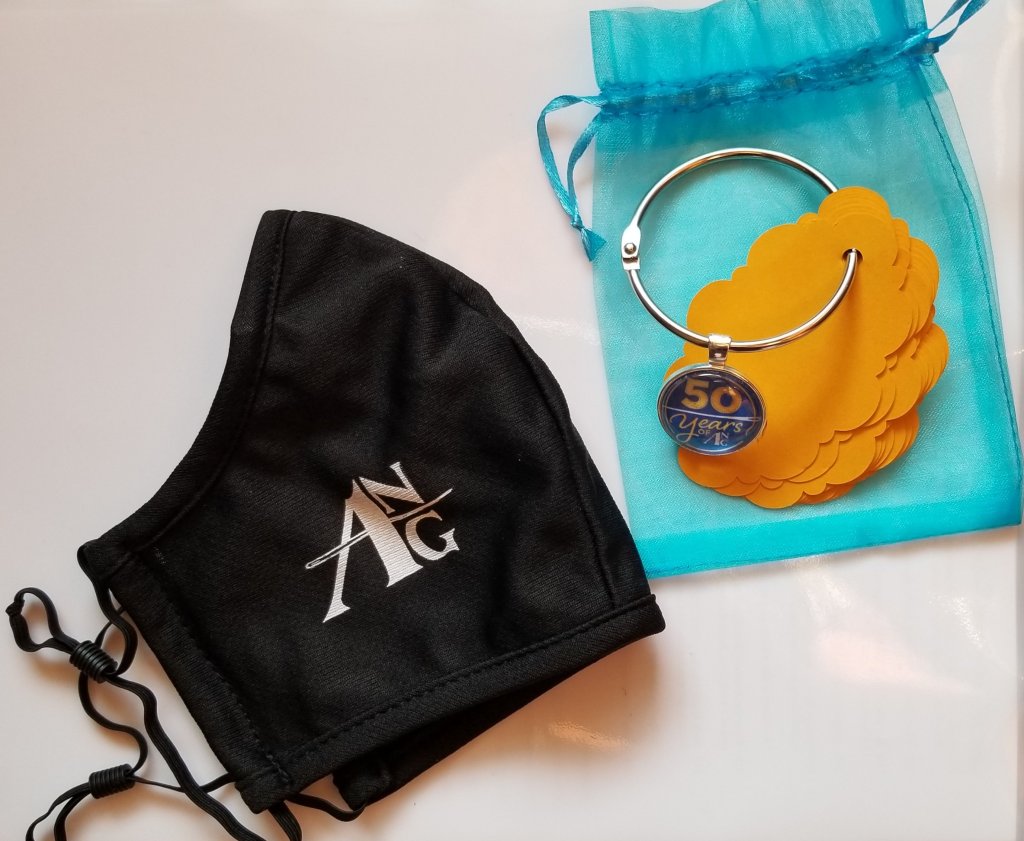 The American Needlepoint Guild (ANG) is holding their Seminar virtually again this year. Jessica T sent these gifts to all attendees and a lovely letter thanking everyone for attending virtually this year and inviting us to join what surely must be an in-person Seminar to celebrate the 50th Anniversary of ANG as an organization. The orange thread drops on the ring came from Barefoot Needleart. Very thoughtful surprise!