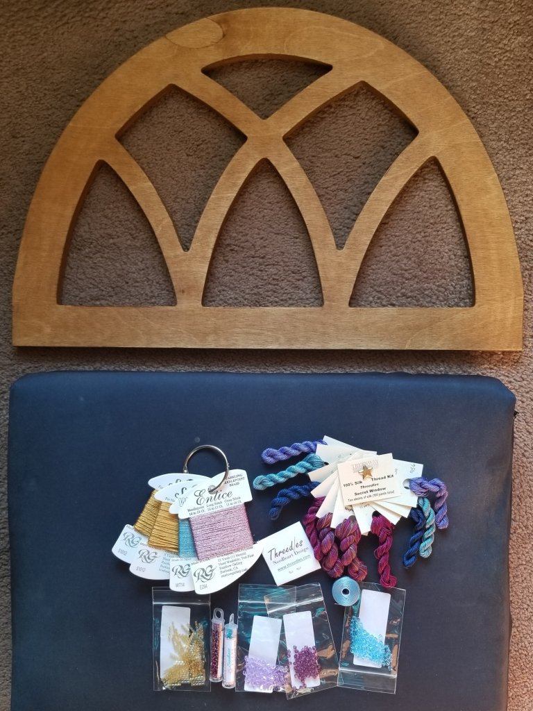 I suggested Kurdy Biggs specifically because of Secret Window which I had not started since getting it in the fall during ANG’s 2021 Virtual Seminar. Kurdy’s husband made the wood frame and that came with the kit.