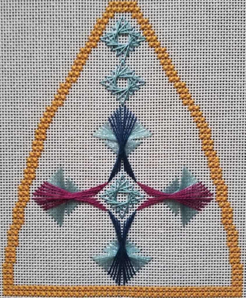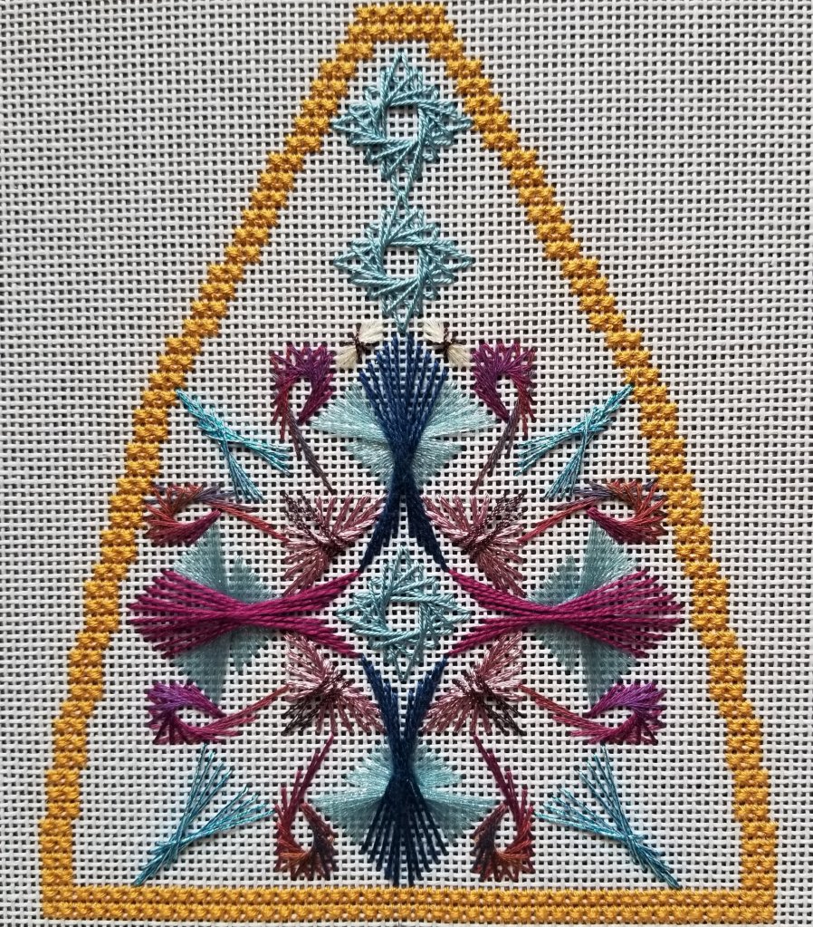 This was one of the three painted canvases discussed at last night’s meeting with my ANG Main Line Stitchers chapter. Good turn out in person and on Zoom. A few technical difficulties but we managed.