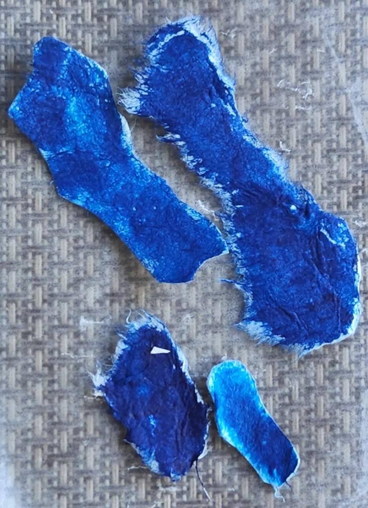 My third class, also 2 days, is Blue Hills with Dawn Donnelly. It is another type of applique of a different sort – applying paper to a canvas. This is also referred to as Mixed Media. Dawn makes her own paper. We didn’t have to do that but she explained the process and has a Zoom lecture on that topic which I was fortunate enough to be an invited guest earlier this year. She gave an abbreviated talk about the process today.