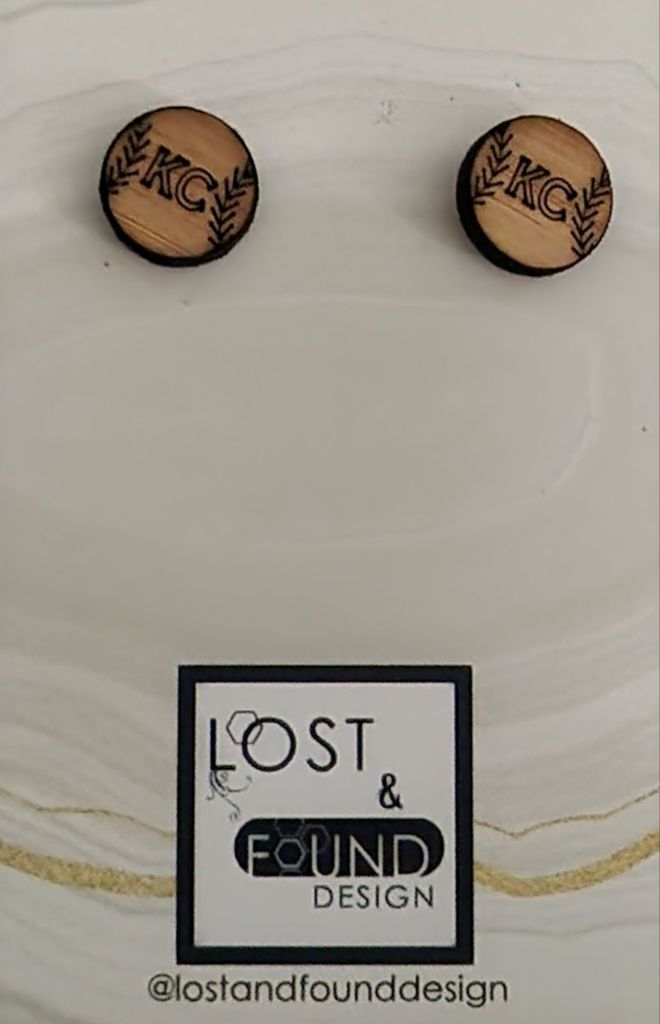 Dinner at the KC Royals ballpark tonight. Bill got me earrings for the game made by a local artist out of wood.