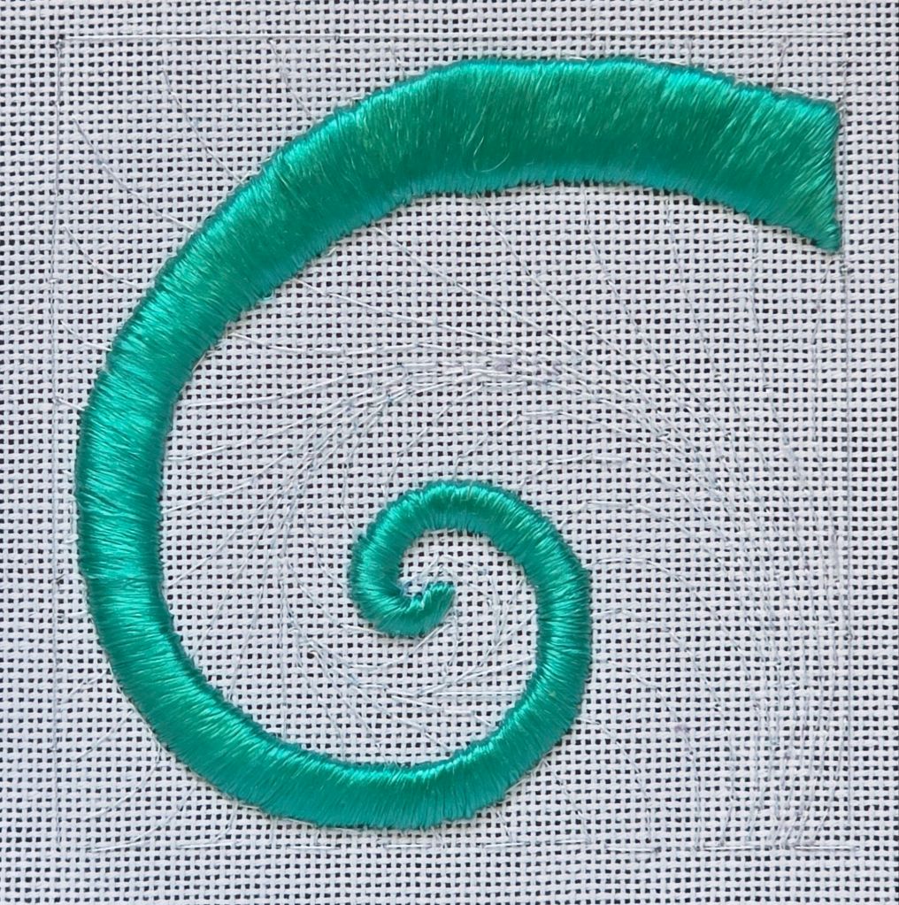 Generally, I try to find something positive to blog about. As a kid, I remember being told, “If you can’t say something nice, don’t say anything at all.” But, I have to warn you not to strand especially when it involves this much silk thread. I had to stitch all the spirals first and will fill in the chamber with 1 or 2 strands in the Outline Stitch battling snags. None have been worse than this one but all are annoying. I’m not using too long lengths either.