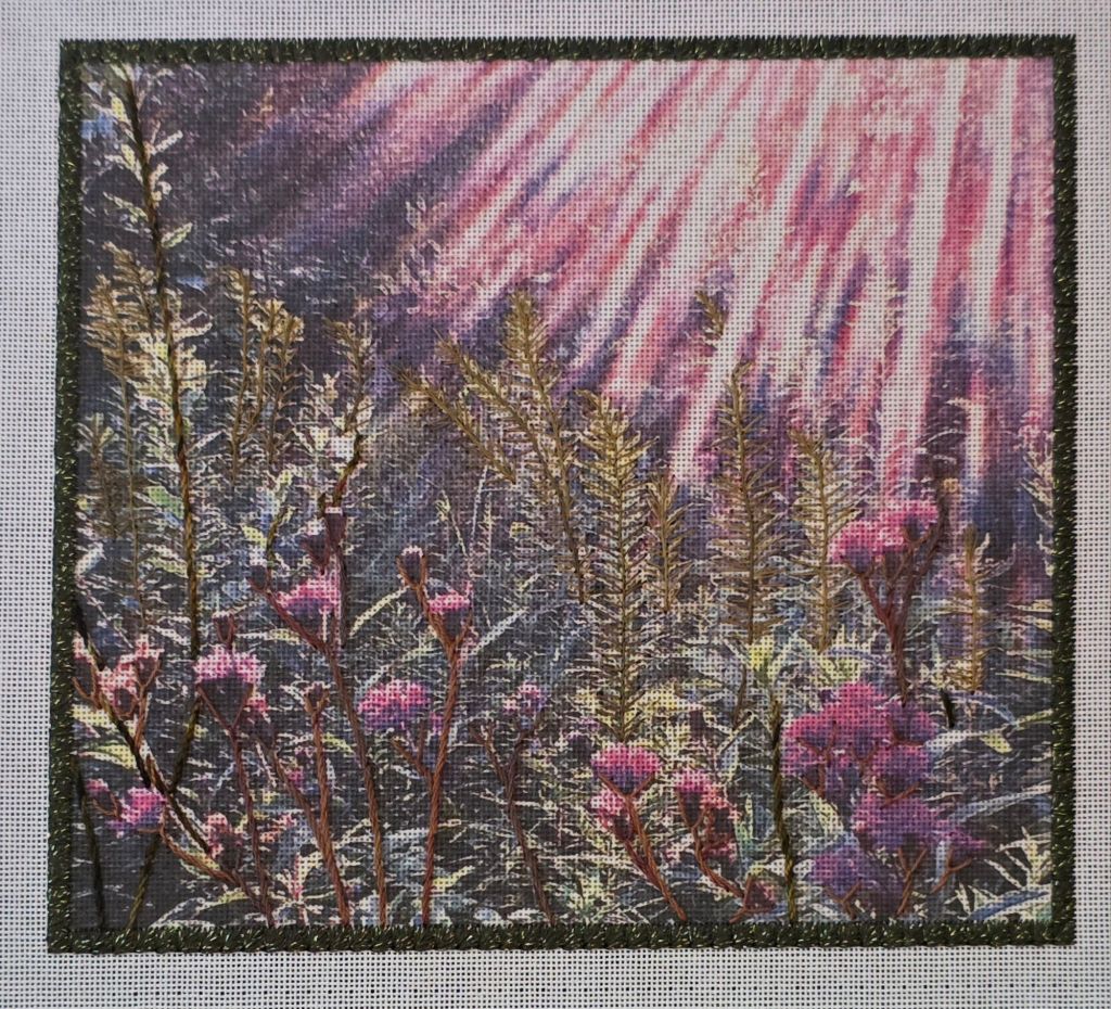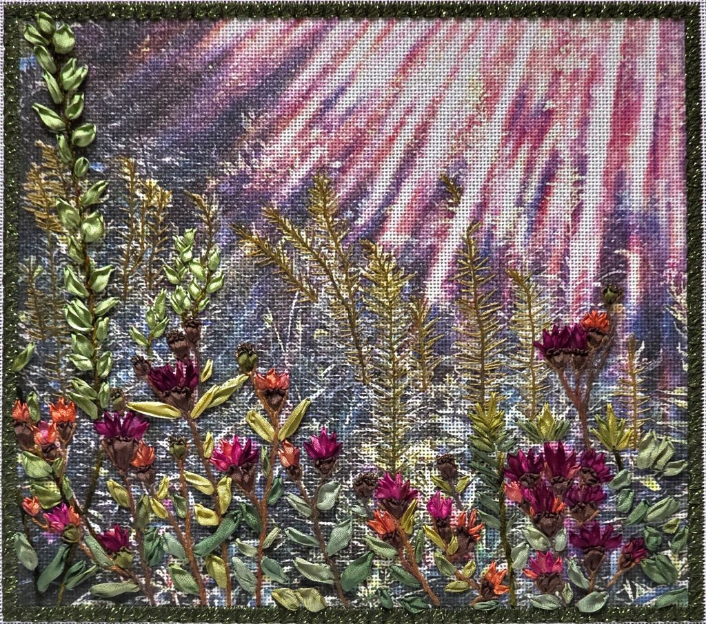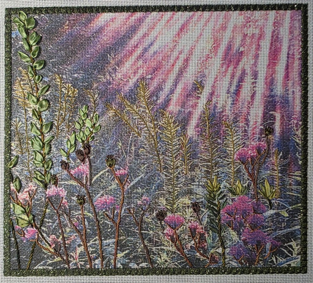Now that I’ve added the stems of the ironweed and seed pods, I can tackle the ribbonwork!