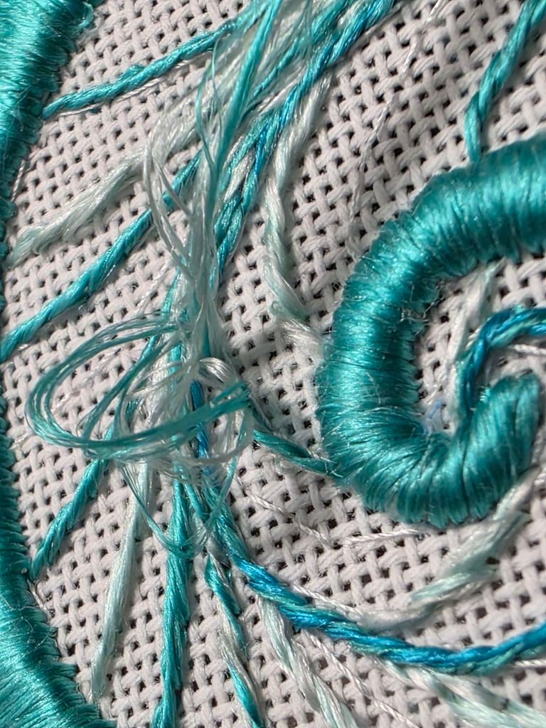 The only positive is that the final piece will be lovely if I can ever fill in the chamber. It feels like I’ll be doing this for days. Two strands cover more but snags more too. I really want to get this stitched in 2025. Fingers crossed!