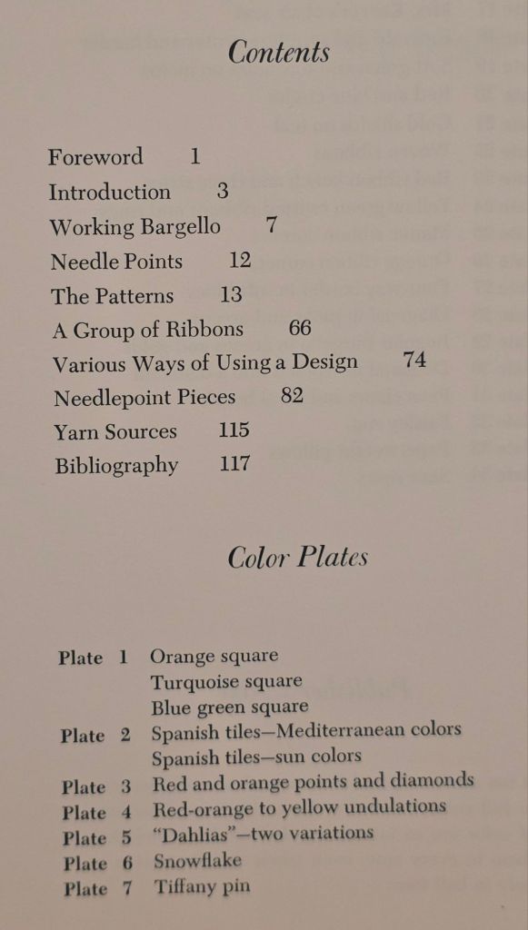 Barbara’s other book, The Craft of Florentine Embroidery, also from 1967, is on the Bibliography from EGA’s Step 4 Master Craftsman (but I don’t have it).