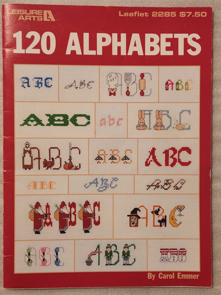 The ANG NJ Needle Artists chapter is doing Chottie’s Plaid for a name tag. Last night, Cathryn discussed how to fit names onto the available space. It dawned on me that I never compiled a list of my alphabet books.