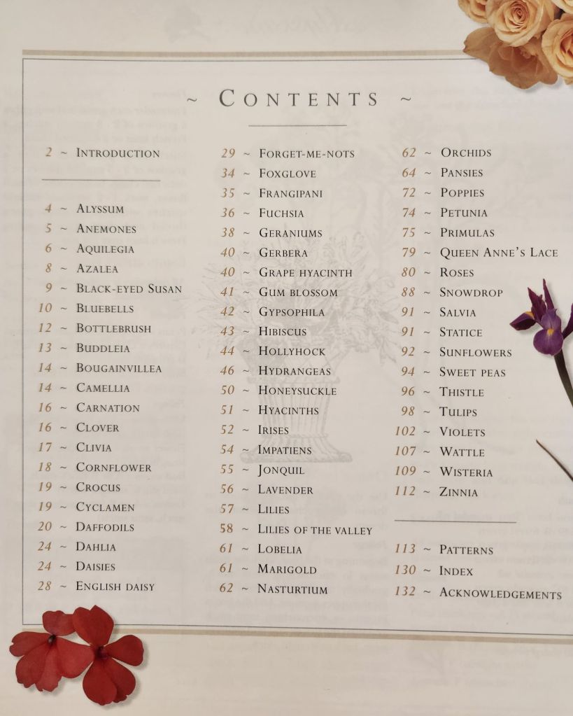 This book shows a stitched flower, threads to use, stitches to use (no stitch directions in this book), order to work, and patterns for transferring are provided. The tulip motif is especially stunning in an art nouveau style. A couple of the designs include a simple vase.