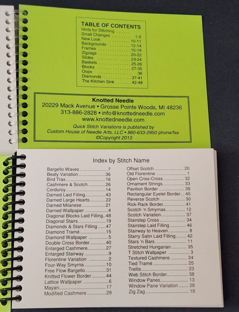 Quick Stitch Variations and More Quick Stitch Reference by Custom House of Needle Arts allows the ordering store to put their logo on the cover. Nice feature. It might make a nice Anniversary gift for chapters to give to their members (@ was $20 retail price).