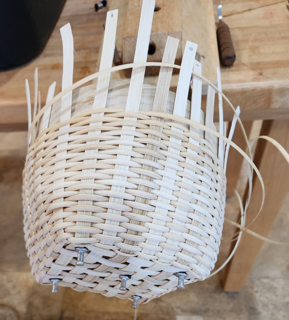 A few members of my ANG Main Line Stitchers chapter had a class to make a basket last Saturday. Only one of us had made baskets with Karen before, so we made this beginner style basket called Cathead’s Basket and was woven with reed. I didn’t add a handle because I am just going to place a lid on top with the Circles design (2008 ANG Stitch of the Month) we’re stitching as a chapter project.