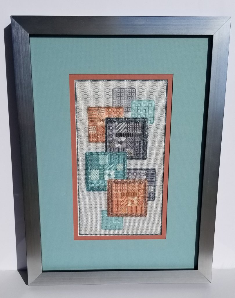 In the before time (pre-coronavirus days), I had dropped off three pieces to get framed at Romeo’s Fine Arts in Lansdale, PA and a couple of weeks later three more pieces at Repenning Fine Arts in Audubon, NJ. Several of my ANG Main Line Stitchers chapter members recommended Pam and Dave at Romeo’s and I decided to try them. But, I’ve been happy with Jim and split my framing between both stores. Note to self: Get pieces framed as you finish them. It feels harder on the pocketbook but it’s really the same. Anyway, . . .