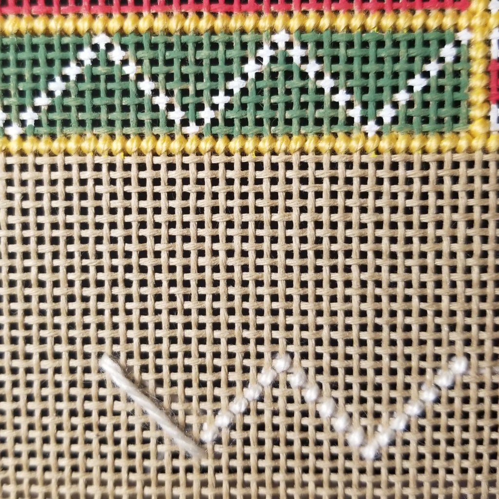 In Needlepoint and Beyond: 27 Lessons in Advanced Canvas Work by Edith Anderson Feisner, she says to always work into the stitches that have been previously done. That makes sense. It’s also been described as working from a clean hole into a dirty hole. That’s not always possible but an excellent tenet to follow.