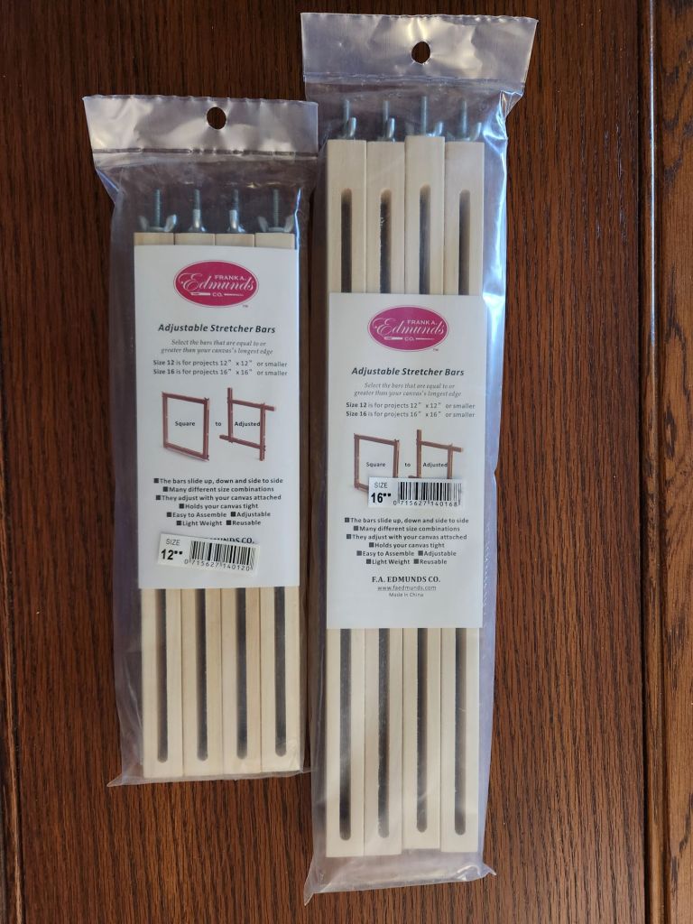 I heard about Adjustable Stretcher Bars by Frank A Edmunds and found a set of 12″ and 16″ online and had to try them – because they exist!
