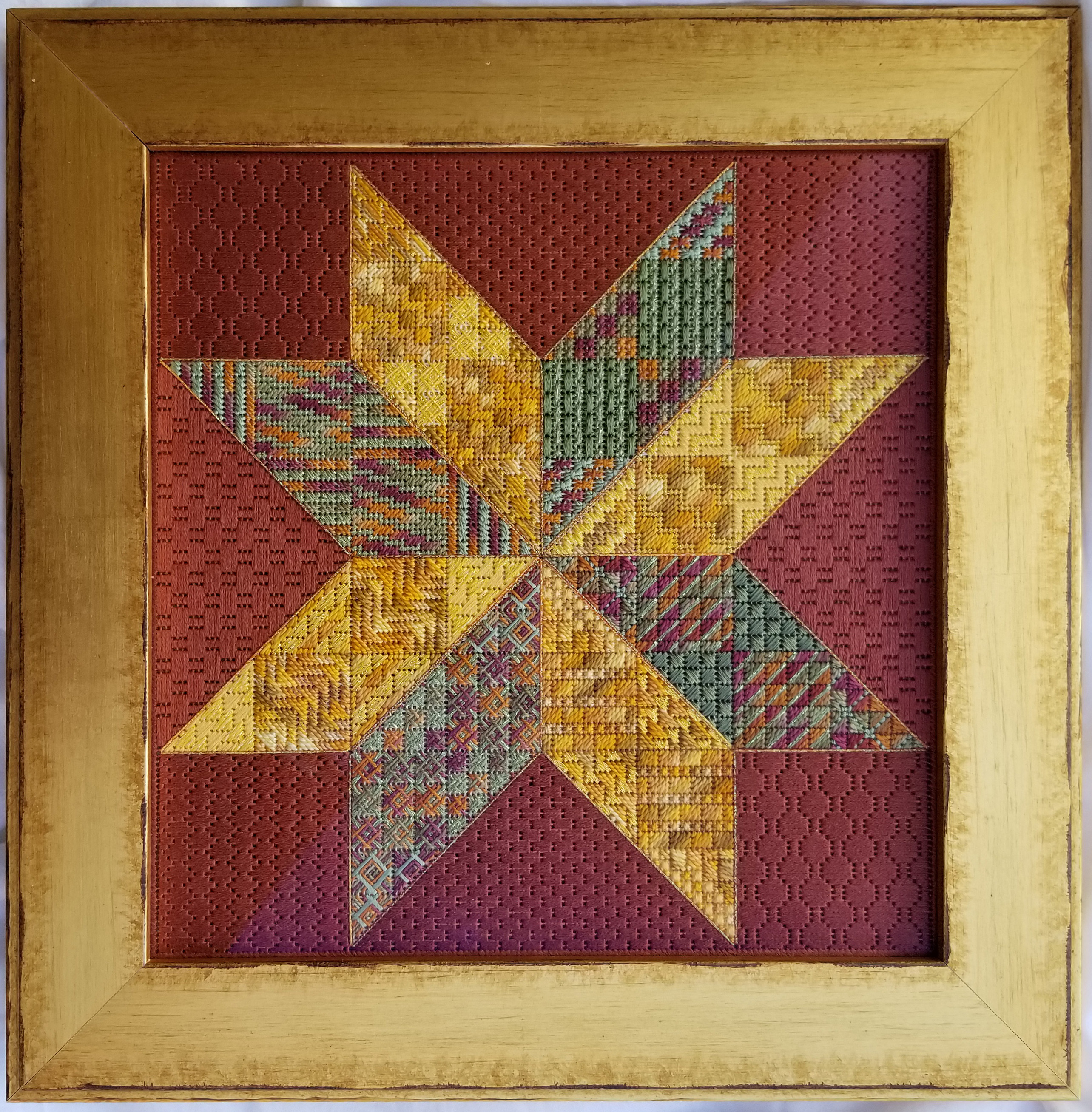 The Star of Stitches by Kathy Rees was an ANG Stitch of the Month for 2020 and the ANG Main Line Stitchers chapter followed ANG’s New Jersey Needle Artists (NJNA) chapter stitching it a year later. We gained some good insights by seeing how they made out. Main Line enjoys selecting their own colorways as much as NJNA.