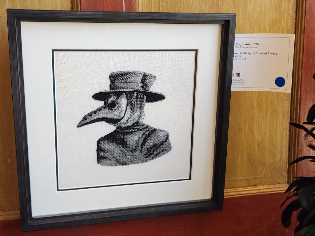 Cecilia, one of the members of ANG Main Line Stitchers, recently contacted me about potential stitches for The Plague Doctor (a full length robed piece). So, I was surprised to see a different version by Stephanie St.C appear at Woodlawn. Cecilia shared the story behind these pieces (wiki it for the details) but that pointed thing is a mask. A Google search reveals its popularity is widespread.