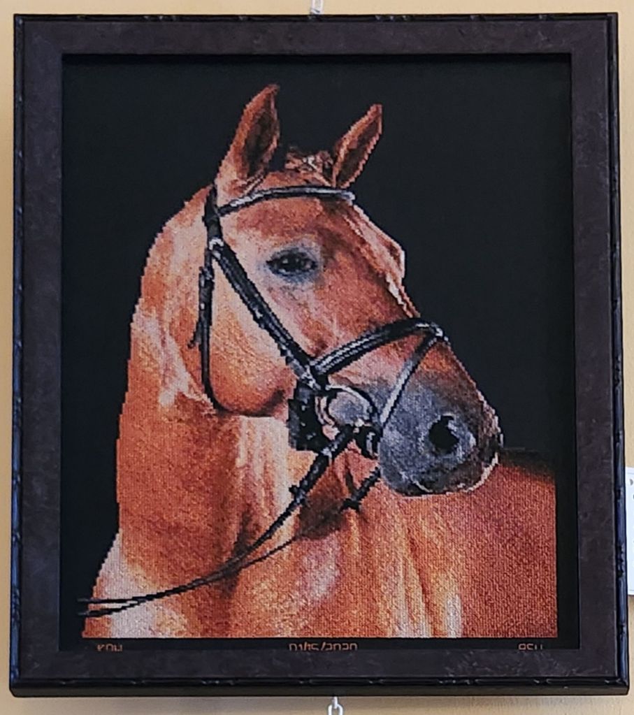 There were several other large cross stitch pieces worth mentioning including Barb Meier’s Bathtime (designed by Heaven and Earth), Meghan Benson’s Autumn Trails (designed by Charles White), Kim Smith’s Seashell Wreath designed by Janlynn/Nancy Rossi), Elizabeth ONeal’s Cross Stitch Tiles, and Ronald Walker’s Portrait of a Horse which could have jumped off the canvas. The shading on each piece was incredible.
