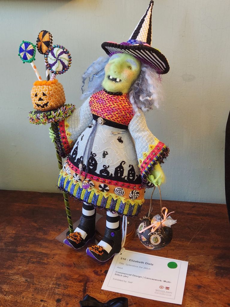 I already discussed several pieces in my previous post (https://melitastitches4fun.com/2024/03/07/fireside-sampler-at-woodlawns-61st-annual-needlework-exhibit-2024/), and they did not disappoint, especially Deborah Merrick-Wilson’s goldwork (original designs, so I won’t show photos).