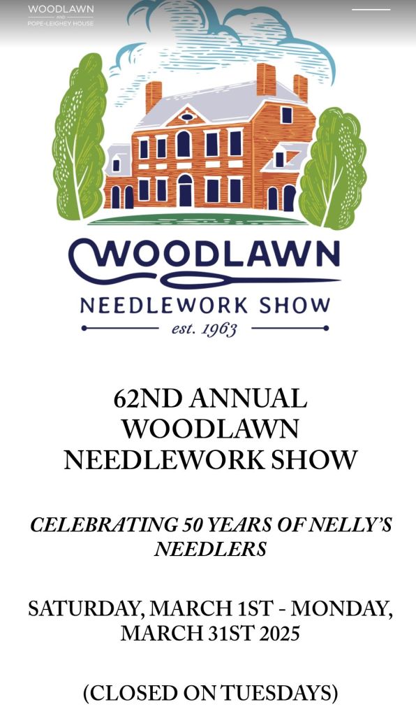 The Nellie’s Needlers are celebrating their 50th Anniversary with an excellent show, the 62nd Annual Needlework Show at Woodlawn. We made it on March 1 this year!