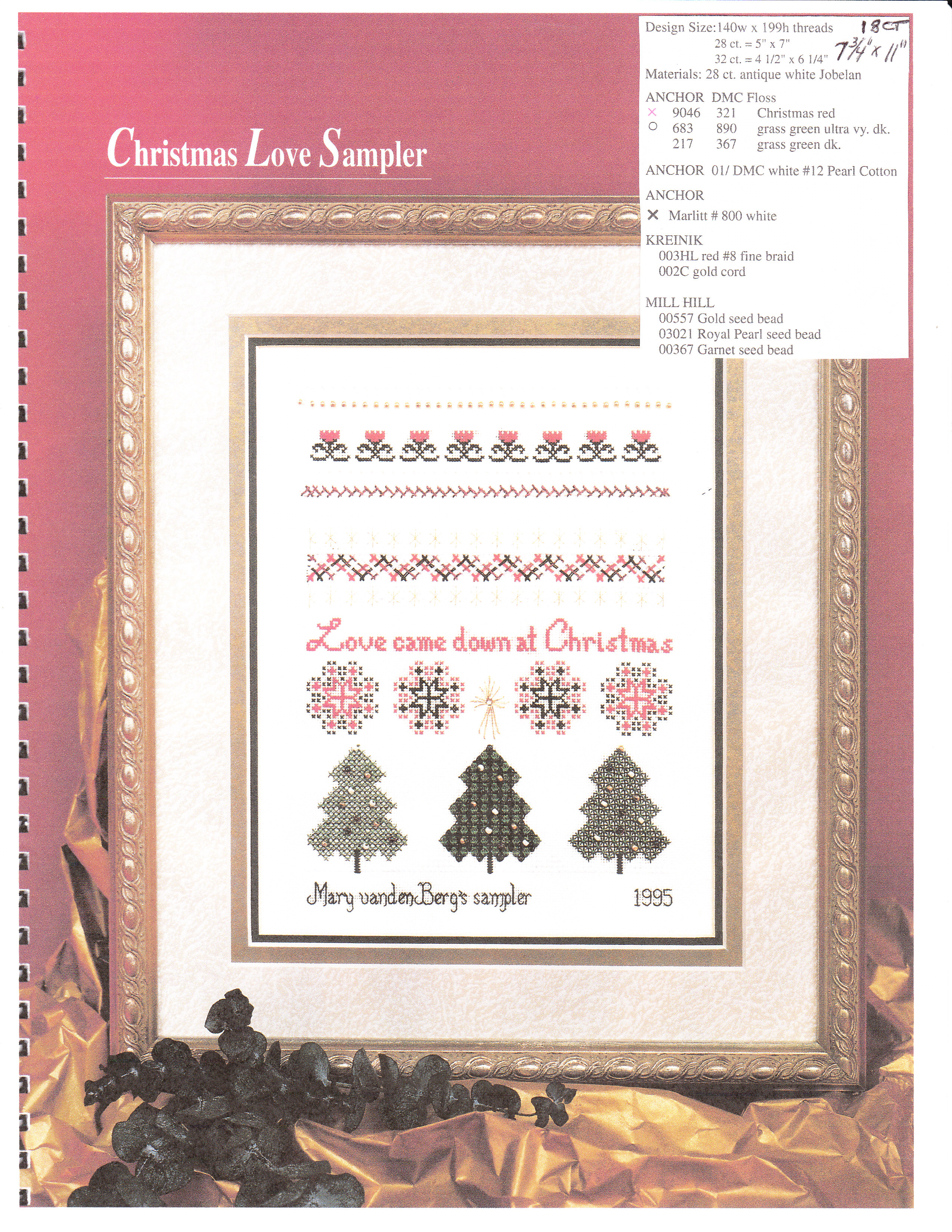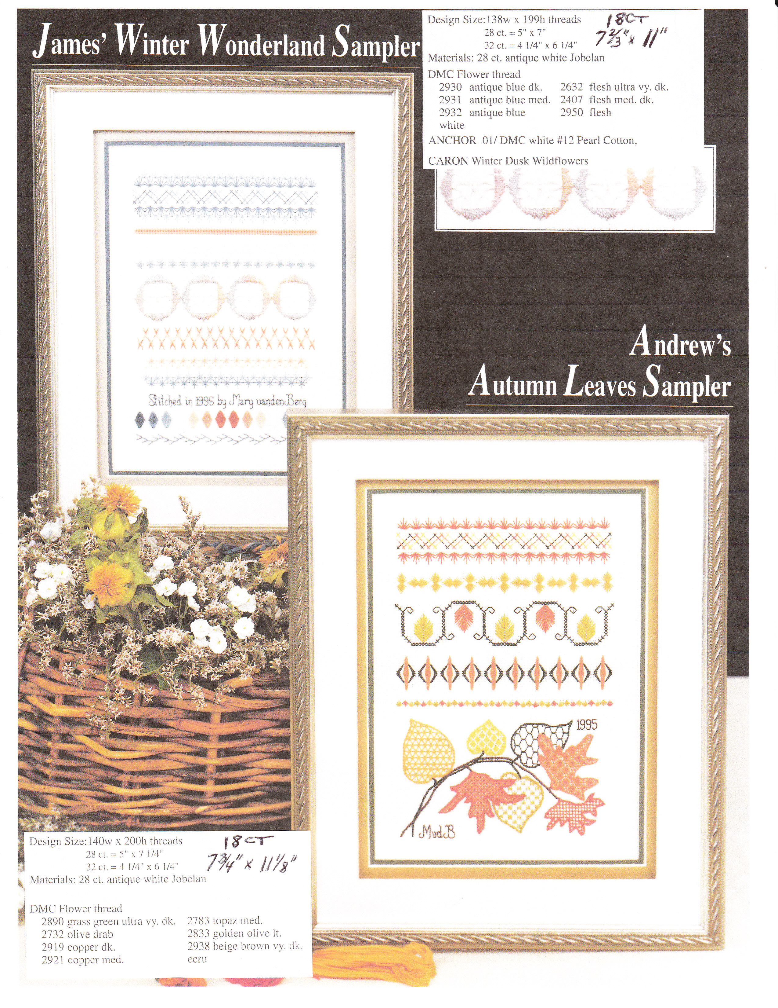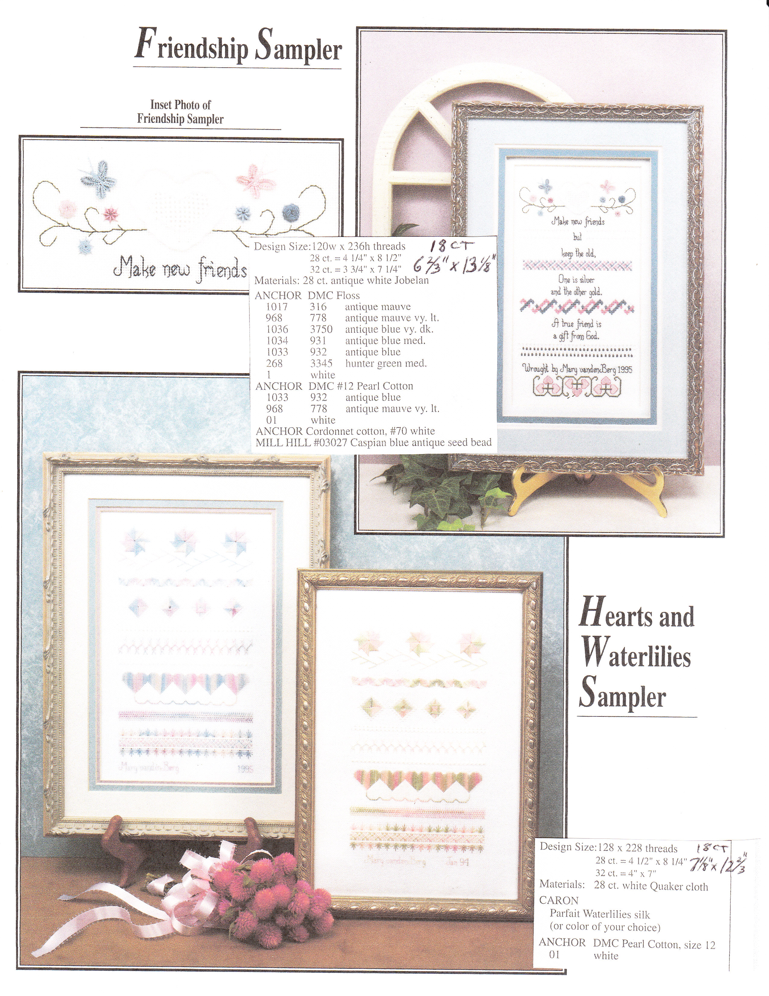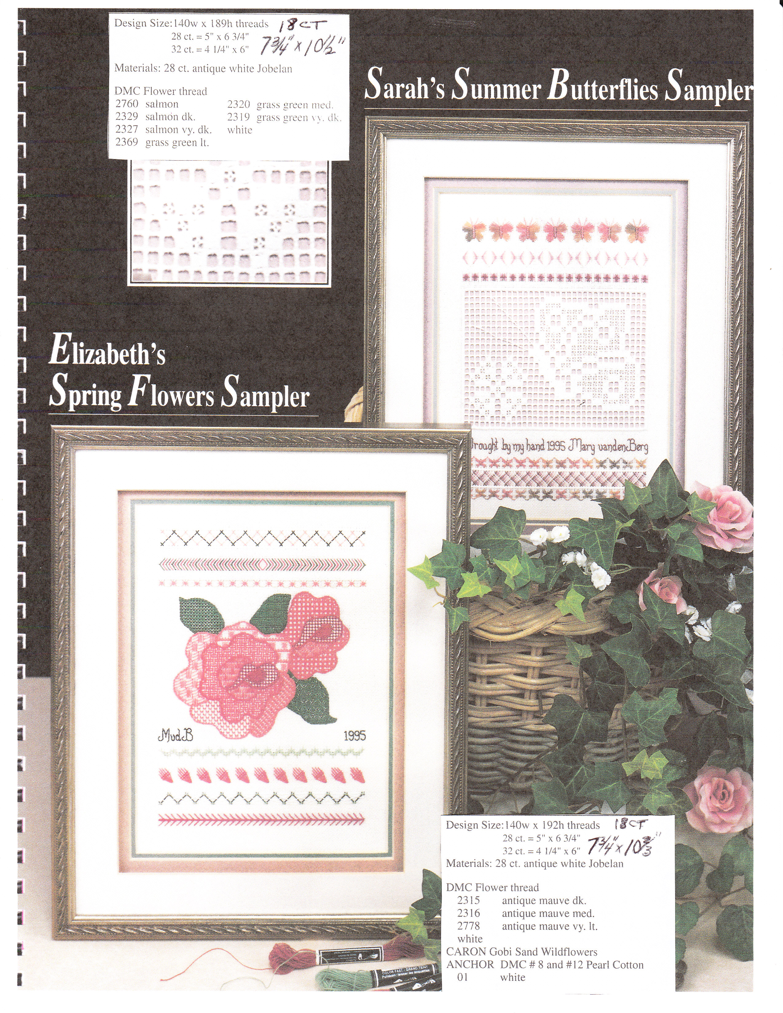 I did not realize that the samplers in the book would be based on 28 or 32 ct (our group prefers 18 ct). So, I calculated the sizes if done on 18 ct (Summer Butterflies: 7&3/4 x 10&1/2, Spring Flowers: 7&3/4 x 10&2/3, Winter Wonderland: 7&2/3 x 11, Autumn Leaves: 7&3/4 x 11&1/8, Christmas Love: 7&3/4 x 11, Friendship: 6&2/3 x 13&1/8, Hearts & Waterlilies: 7&1/8 x 12&2/3). I reminded folks that the threads suggested would be thinner than what you’d need for 18 ct. Except for the Butterfly sampler, they should up nicely on 18 ct canvas. I have learned a lot! And, the threads recommended are also not longer available. They are mostly a DMC flower thread – never heard of it!! But, everyone seems willing & able to handle the adjustments. Phew!