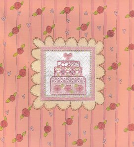 - Love is done in backstitch in top layer of cake