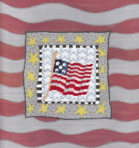 Another flag-waving holiday! What better time than now to remember our soldiers fighting overseas, but also soldiers long gone – may they never be forgotten. Our ANG Chapter (Main Line Stitchers) is working on a project to donate to a museum of a piece with a soldier surrounded by different flags from the Revolutionary War. I forget what State mine was but it was a larger version of the one for my calendar. I used slanted Gobelin for the flag. All of the flags used a star pattern darning stitch for the background. I find darning patterns a difficult stitch to compensate (have to pay less attention to TV!).