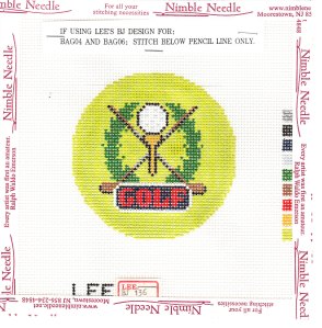 I began stitching this 3-inch diameter insert for a “golf tee holder” Sunday night. But, I didn’t get it done for my husband Bill’s birthday which was today because we’ve been celebrating.