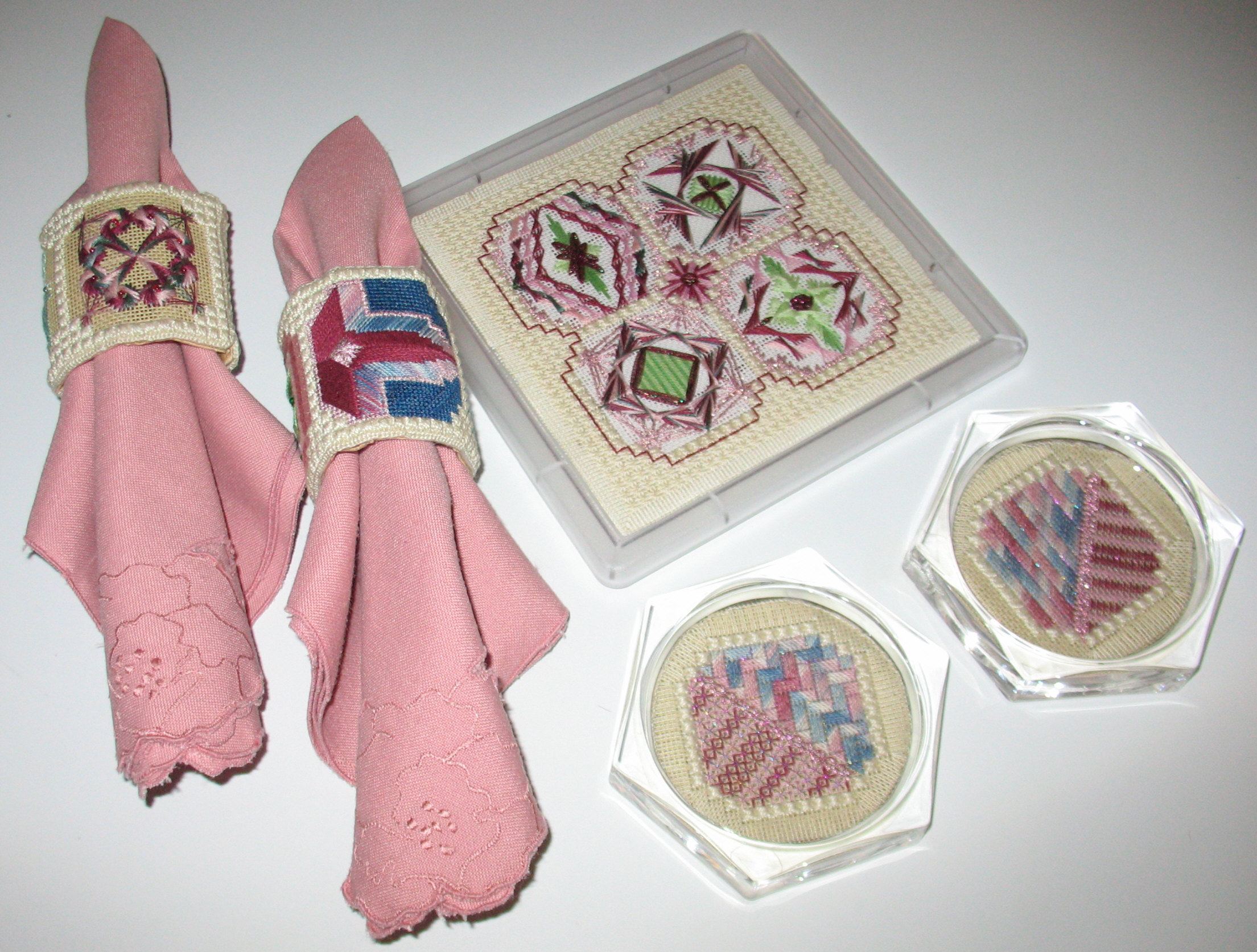The 4 octagons are going into a trivet & is the last of the Pieces of Eight project which we began last year at ANG Main Line Stitchers Chapter. This matches the coasters & napkin rings to make a nice set.
