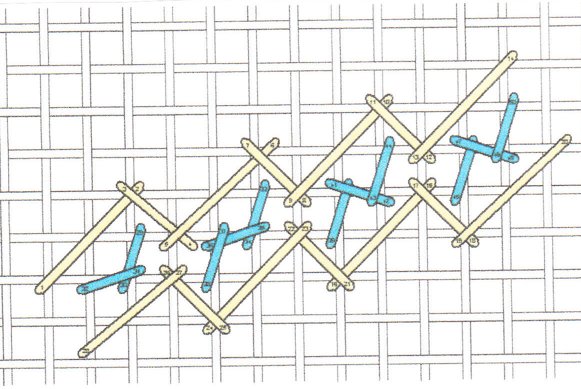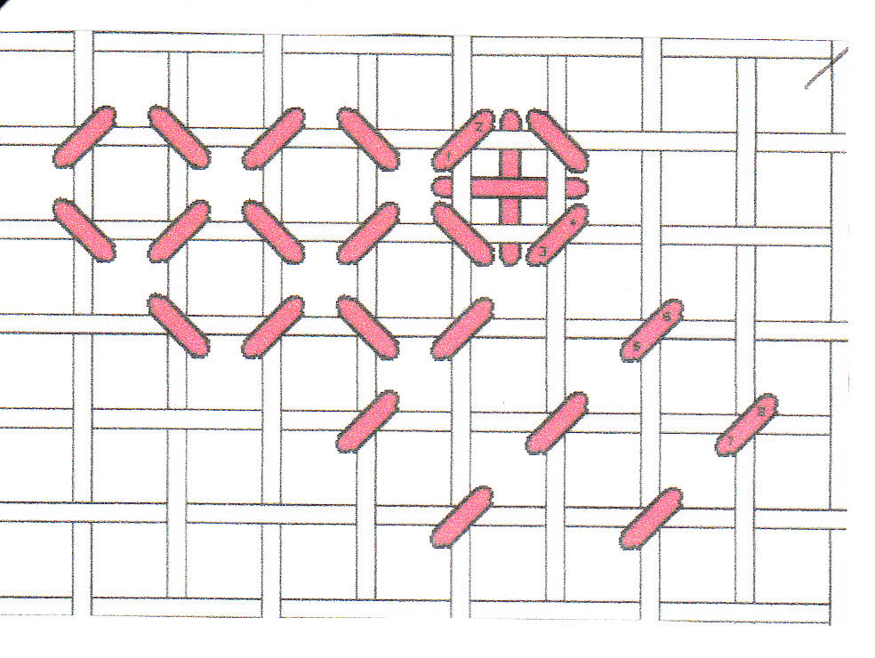 Once I got into a rhythm of the skip tent stitch, the green area surrounding the petals filled in quickly. David recommended using that stitch to cover the holes from the back.