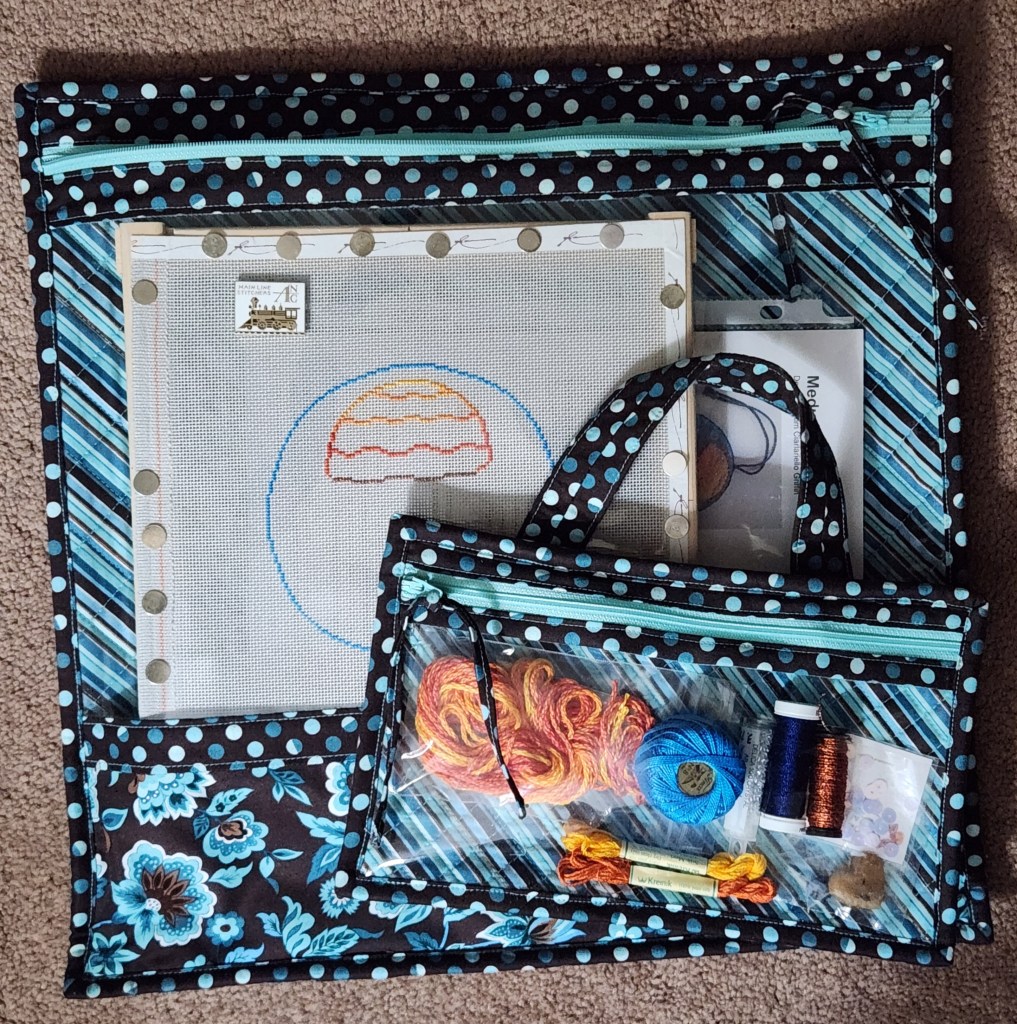 Doesn’t it and the threads look wonderful in this lovely color coordinated blue Floral Project Bag “by Linda”. Maybe this is why I have multiple projects ongoing – so I can use these beautiful project bags!?!