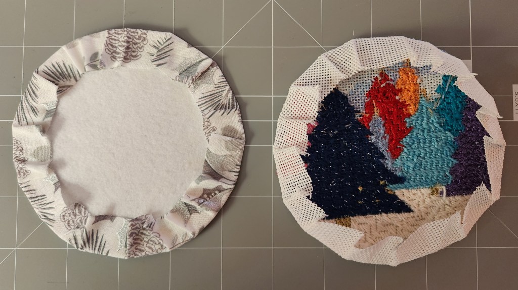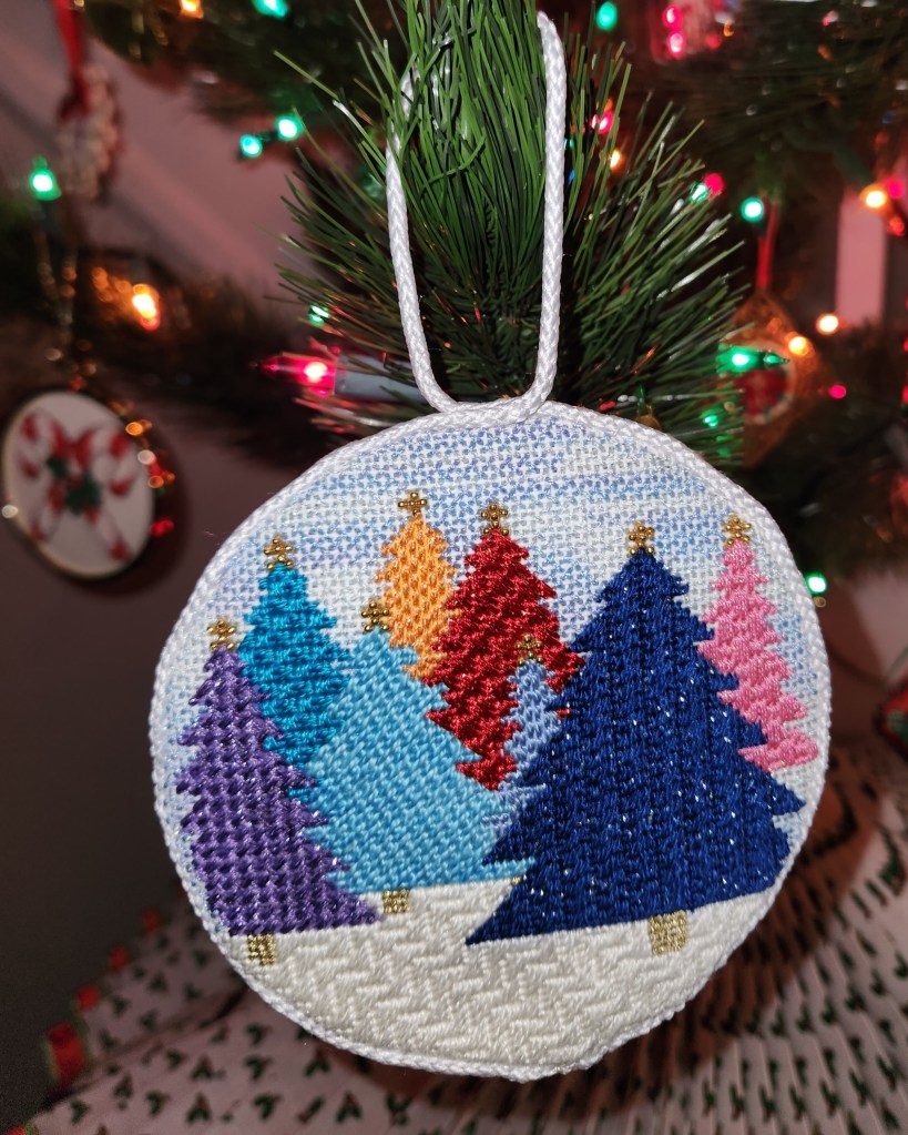 So, I selected the closest in size to my space and tent stitched the design, added some felt, and finished this ornament!