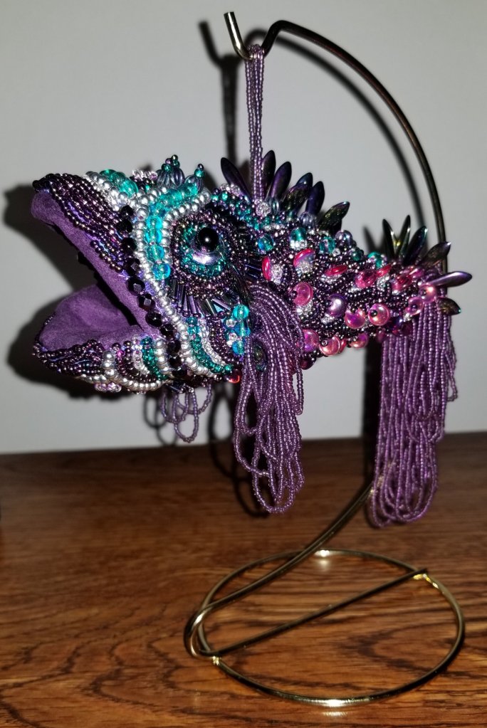 I will put a beading project that was inspired by seeing Jan Huling’s beaded pieces in person. Her magnificent dress was not in the exhibit. Thanks to Sue C for suggesting that we see that exhibit earlier this year. I thought my Edward Scissorfish was a lot of beads!