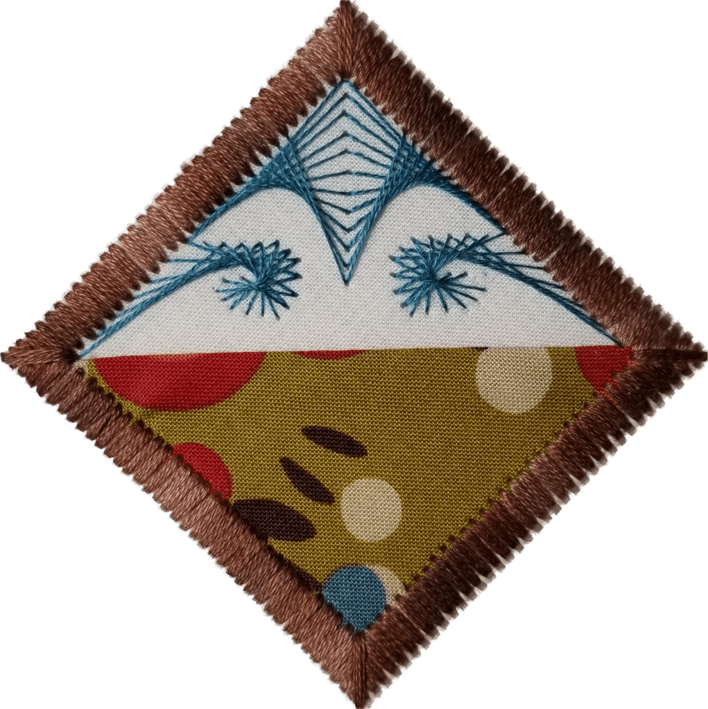 Last month, we took home some unfinished quilt squares. I thought we were to use them as we wanted. However, they were intended to be used in our own visible mending projects to show in June. Well, even though I bought the darning loom, I don’t do mending! So, this is what I did with my fabric pieces. Sally made a key ring out of hers. We were the only 2 to give it a go.