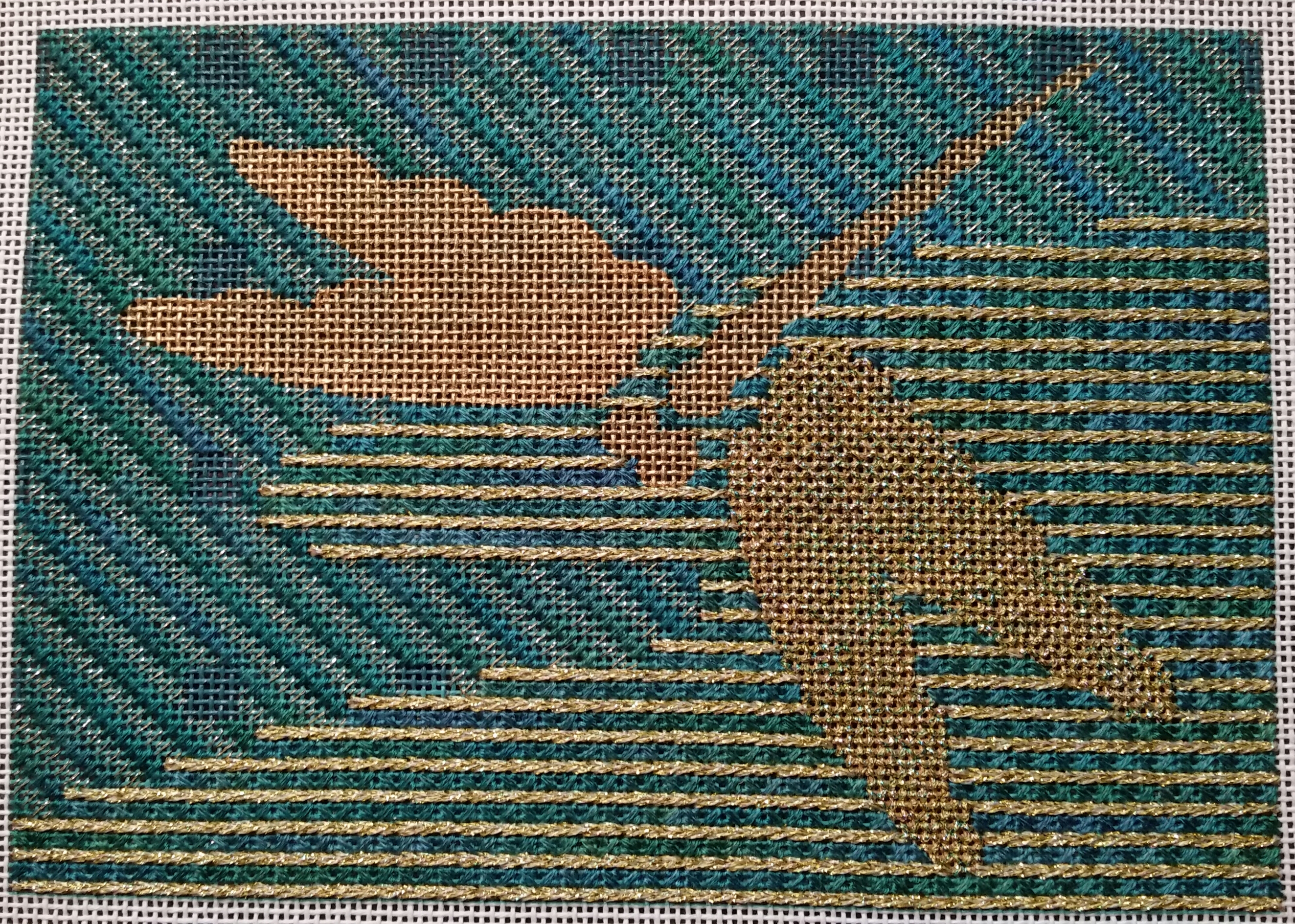 Dragon Fly is a Kathryn Molineux painted canvas that I selected at Nimble Needle for a class with Sharon G who provided the stitch guide.