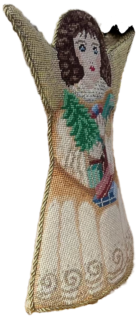 I blogged about Amanda Lawford’s Christmas Angel that I started in September 2023 periodically until I finished it in January 2024 https://melitastitches4fun.com/category/amanda-lawfords-christmas-angel/. In summary, it was for a woman who had started it 40 years ago and wanted it finished, but she just couldn’t find time to stitch and preferred to spend her leisure time elsewhere. So, I stitched it and she sent me a photo of it finished. I would have loved to see it on top of the tree, but I was happy to get any photo! It turned out great. She was thrilled, and so am I. Ignore the little piece of the background above her left wing that, for some reason, will not be erased even with Photoshop.