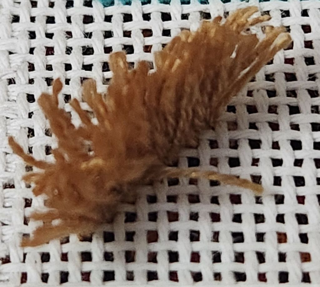 You can’t be loopy and try this stitch! It feels more secure than Turkey work. Except for that one strand, it stands up nicely.