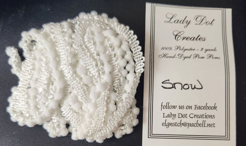 I went through my full-to-the brim white/off-white drawer looking for threads for snow scenes. Here’s a thread (can’t remember where I found it) that would definitely be couched to your canvas. I haven’t used it yet.