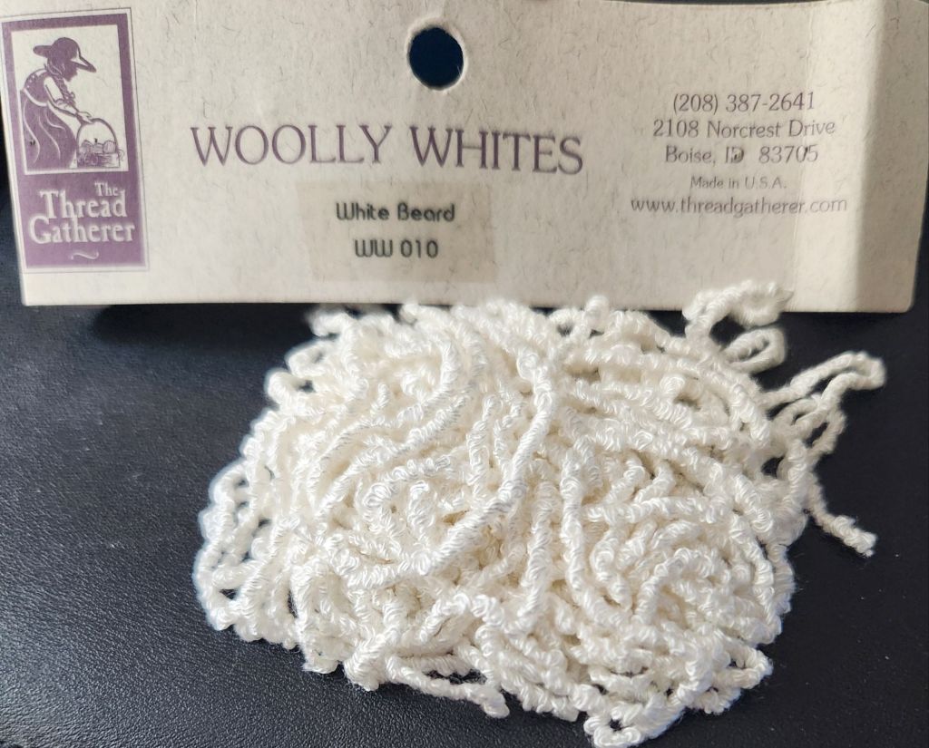 Here’s a thread that could be couched in place for a beard. Santa is always nearby with snow scenes. It looks like it would be great for anyone avoiding bullion knots.