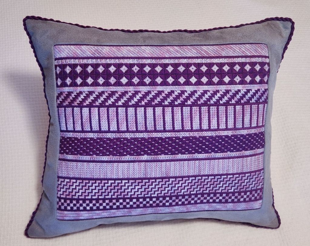 But, I didn’t have any pieces to share that used the Stardust stitch on Day 5. I came close in Rainbow Ribbons by Kam Wenzloff (Nov/Dec 2019 issue of Needlepoint Now) that used the Souffle Stitch. It’s 6 bands up from the bottom in my pillow.
