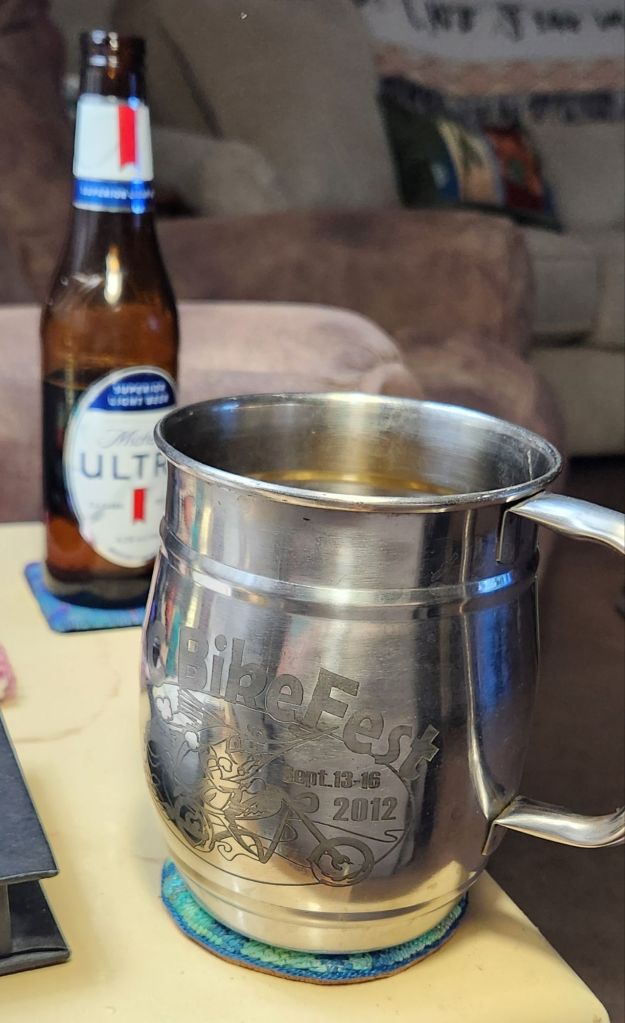 In case you are wondering, no, we are not bikers! How we came to be at a bikers 10th annual festive, we can’t remember. But, we had to get the mugs from wildbill’s soda! We do remember they were filled with root beer, which was delicious, and the mugs were great, keeping liquid cold longer because of the metal.