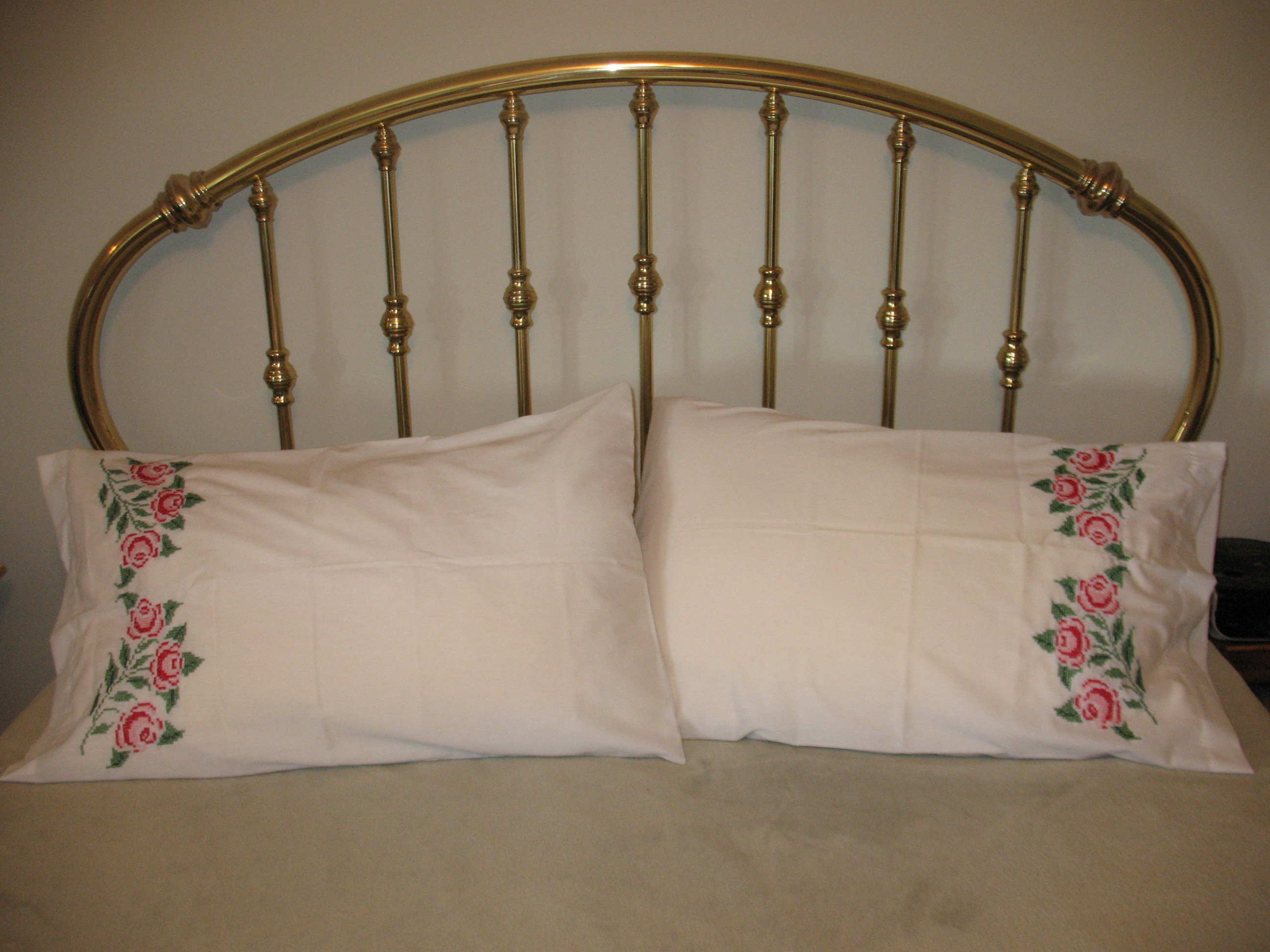 These are stamped cross-stitched pillow cases that I did long enough ago that they are probably vintage too!!